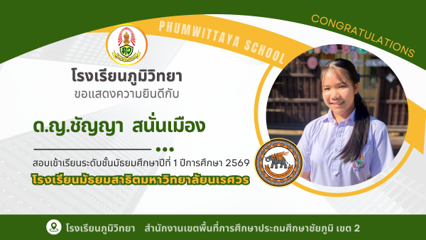 วิชาการดี กิจกรรมเด่น เน้นคุณธรรม นำเทคโนโลยี สู่วิถีความพอเพียง || ยินดีต้อนรับเข้าสู่เว็บไซต์ โรงเรียนภูมิวิทยาค่ะ